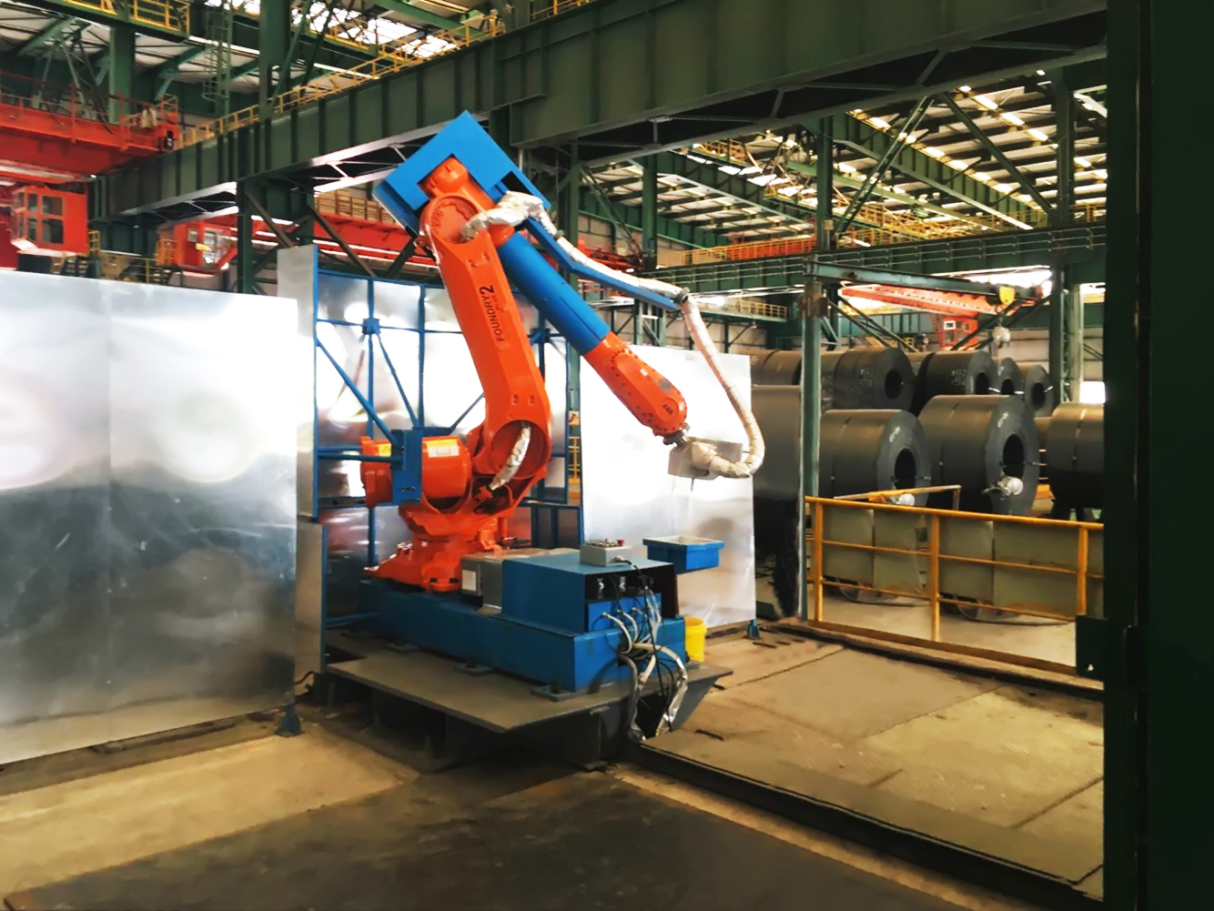4、防塵防高溫設計。針對現場惡劣的環境,機器人采用耐高溫材料包裹、視覺設備采用防塵及通氣冷卻。